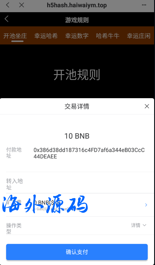 源码是bsc链的dapp,只能在钱包能打开正常挑起支付