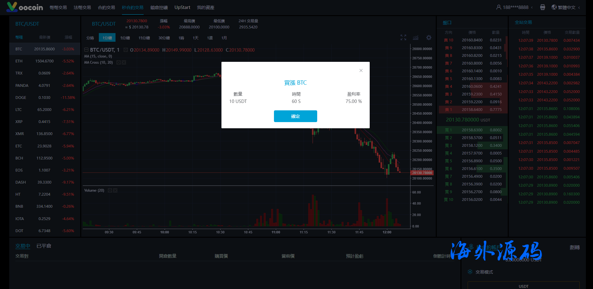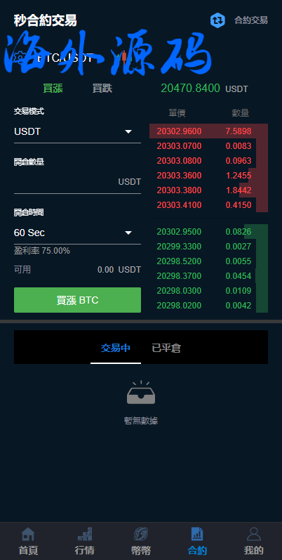多语言虚拟币交易系统/秒合约交易/伪交易所/时间盘