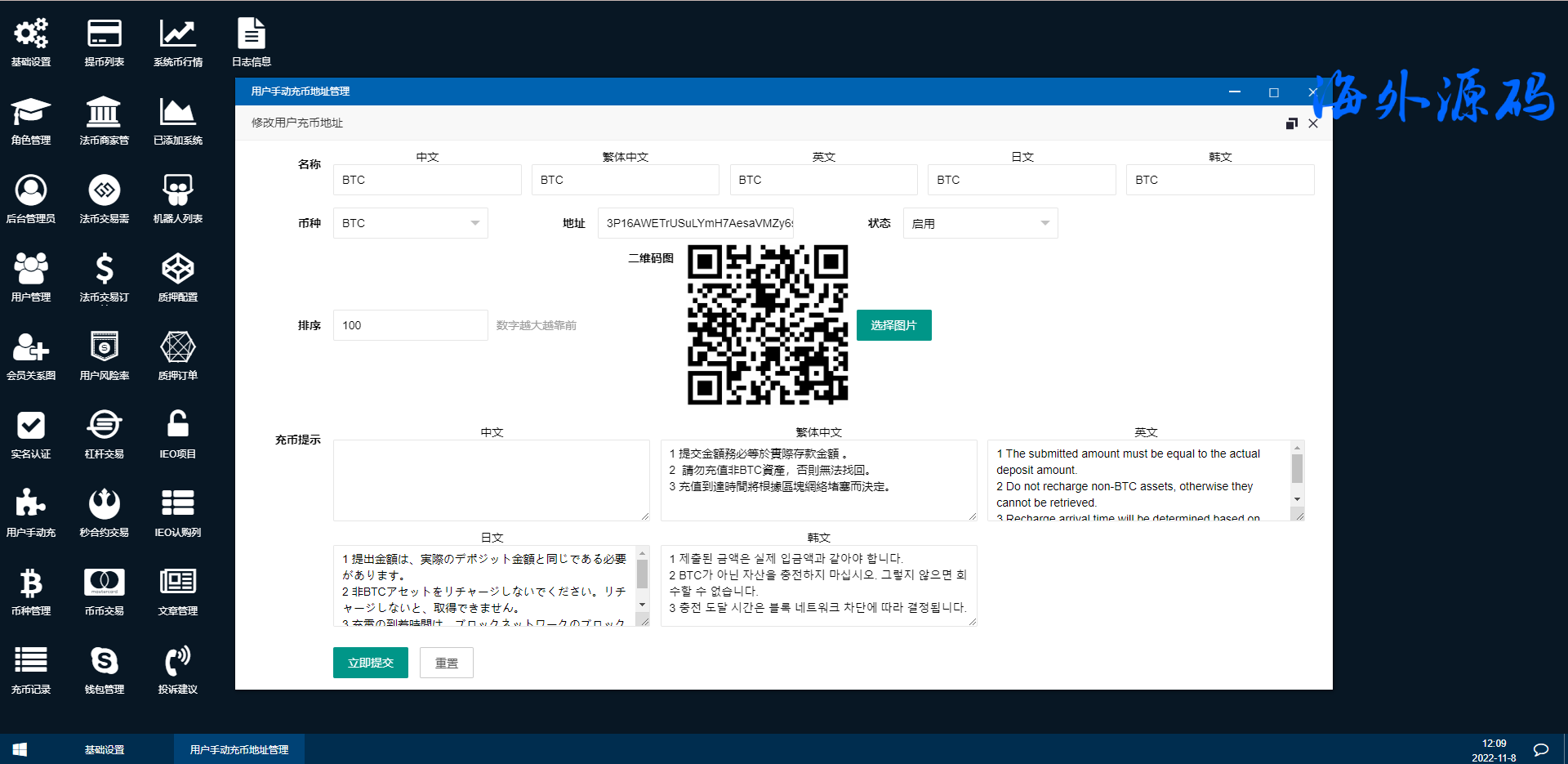 另新增了后台设置充币地址等新功能,附带完整搭建教程