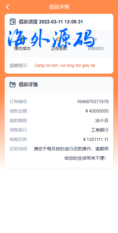 越南贷款系统/海外小额贷款源码/套路贷系统