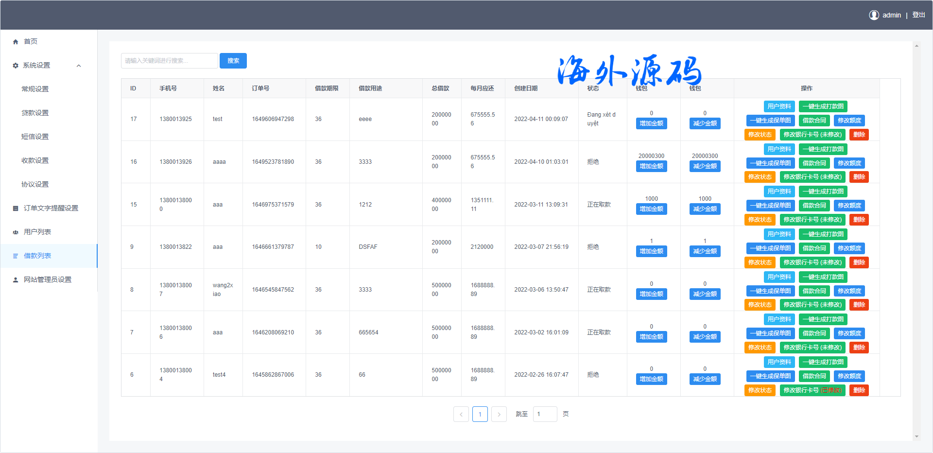 海外贷款平台/小额贷款系统/信用分/合同/提现码