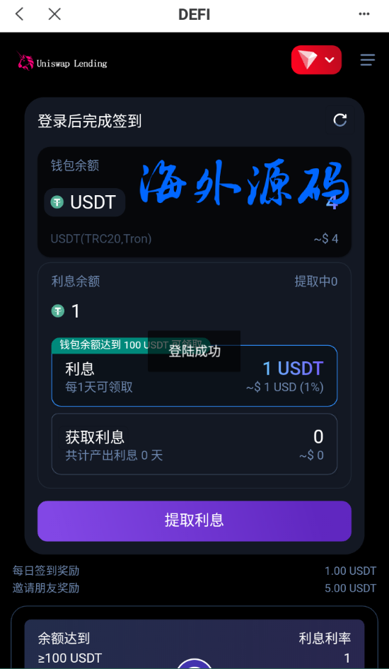 质押生息系统,可正常运营,支持多国语言,缺点就是有提示了