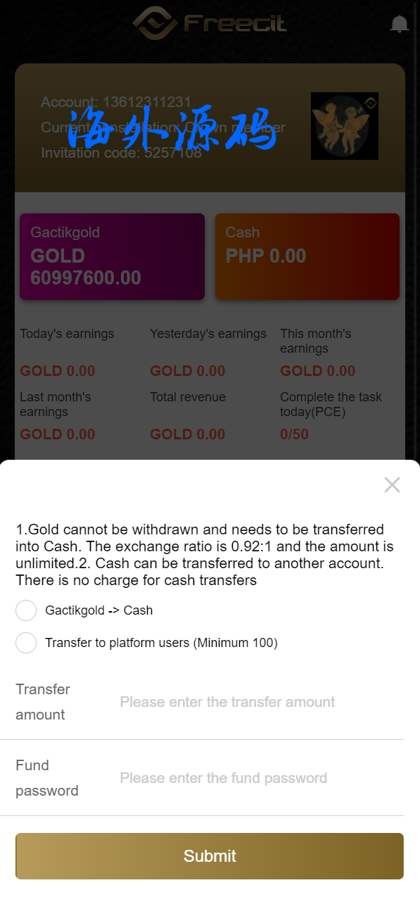 源码前端二开独家UI,新增金币系统,用户完成获得是金币,然后需要兑换成提现货币