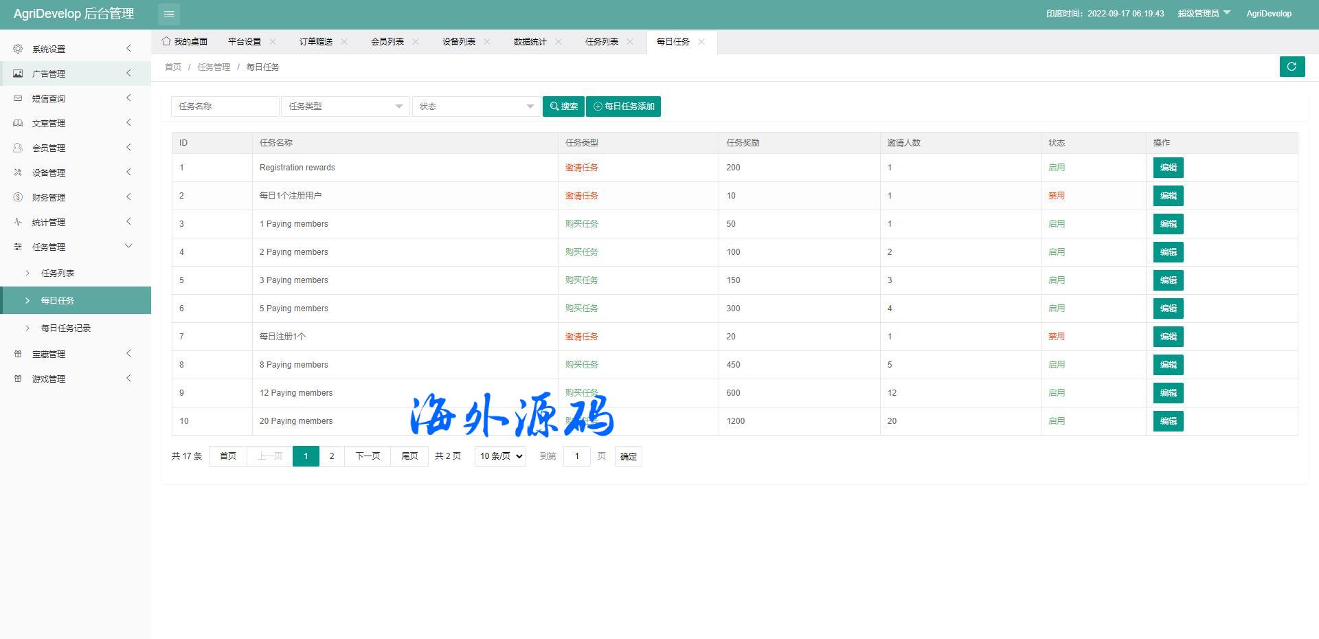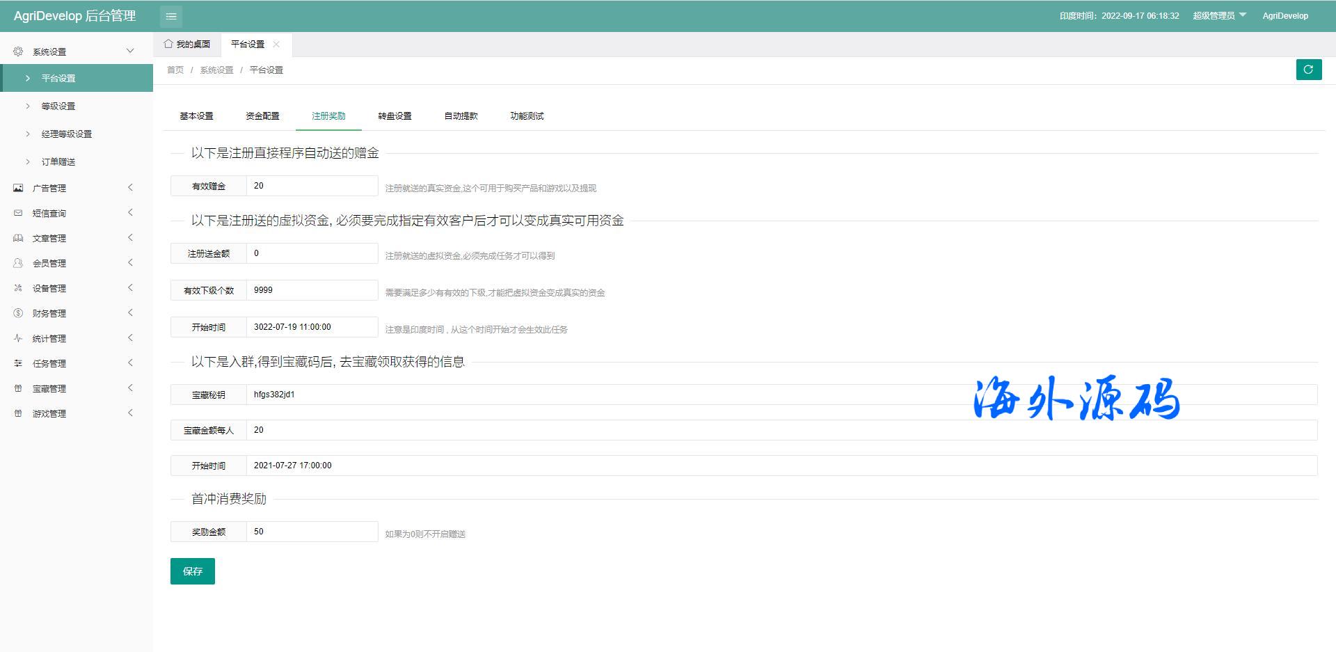 系统符合了市场的所有需求,裂变推广任务、每日任务、宝藏派送等众多功能