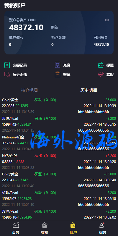 一套二开前端UI得贵金属微交易系统,前端产品后台可任意更换